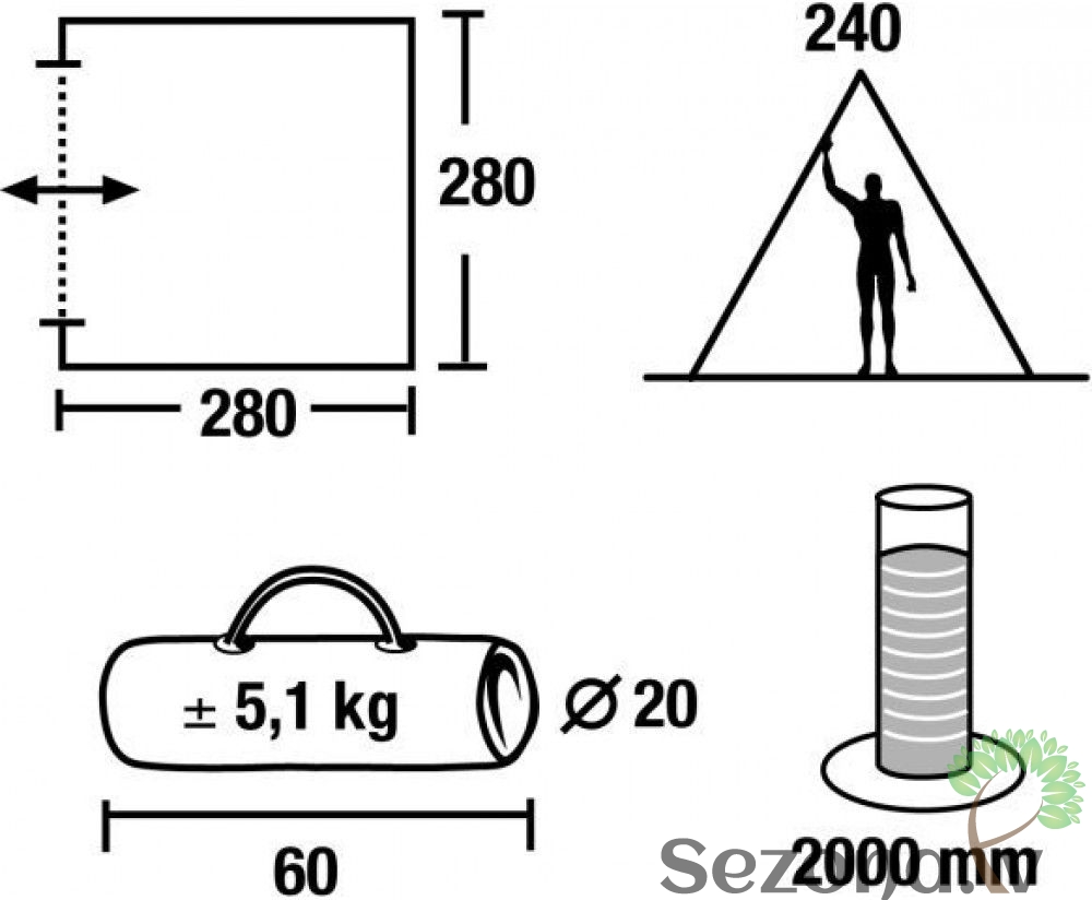 * Arējā telts no 100% poliestera ar PU pārklājumu.