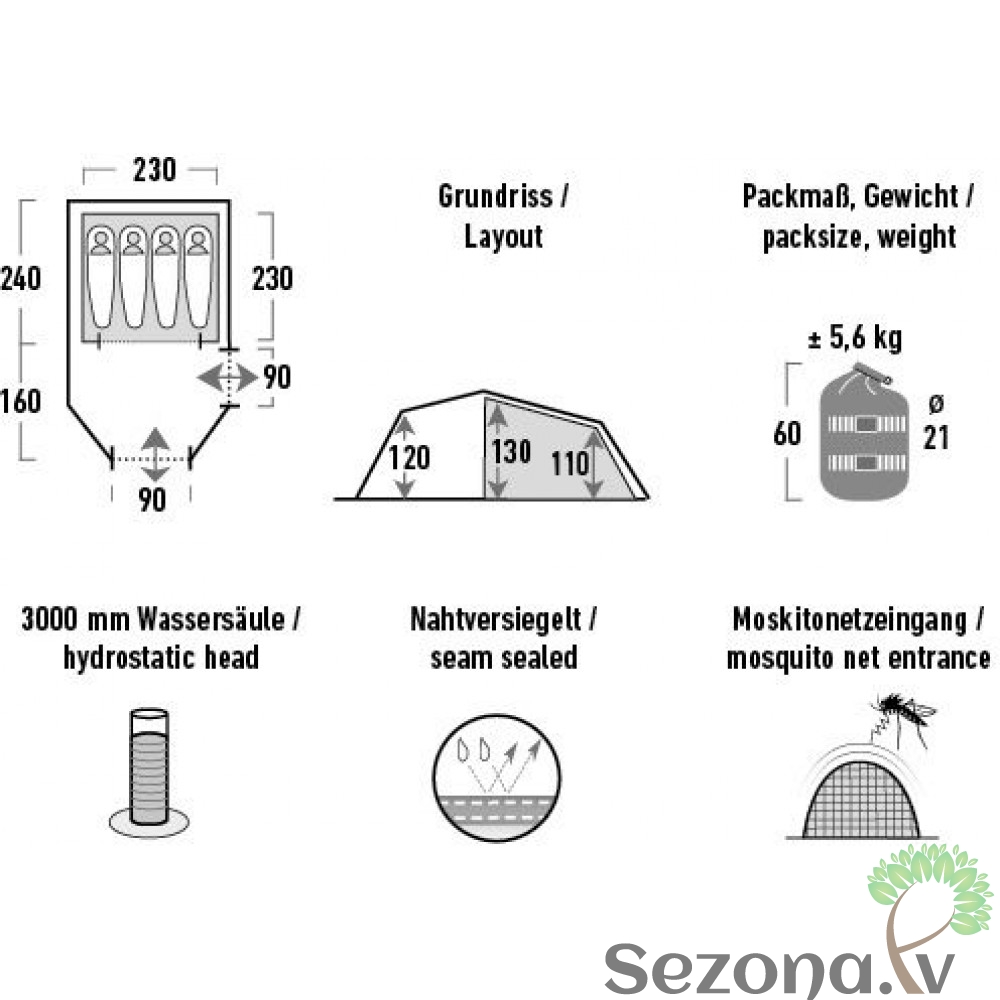 * Iekšējā telts 100% no poliestera; elpojošs.
