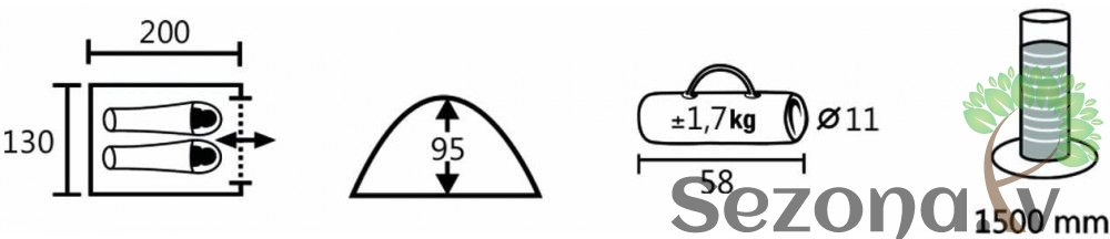 * Ārējā telts no 100% poliestera ar PU pārklājumu.