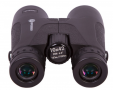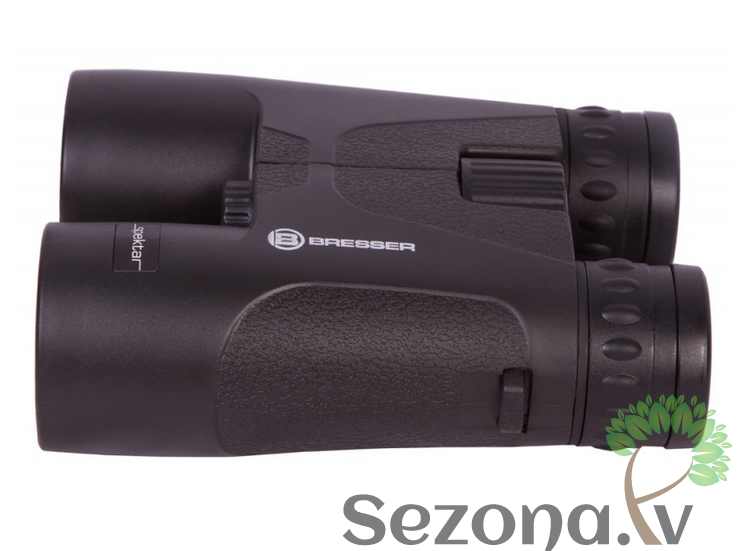 BRESSER 10x42WP ir Roof (jumta) prizmas binoklis ar palielinājumu 10x un optisko apertūru 42mm. Dioptrijas regulēšana ļauj dioptriju korekcijas līdz + -2. Augstas kvalitātes daudzslāņu pārklājums uz visiem stikla elementiem samazina uzmanību atstarojošajiem atstarojumiem, un uzlabo gaismas caurlaidību, un nodrošina augstu kontrastu arī sliktos gaismas apstākļos. Binoklis ir veidots ar ērtu un pret traipu izturīgu gumijas virsmu. Normāls statīva savienojums, ļauj to salabot uz statīva, lai labāk novērotu. Lai nodrošinātu labāku transportu, piegādes komplektā ietilpst maiss un komforta siksna.