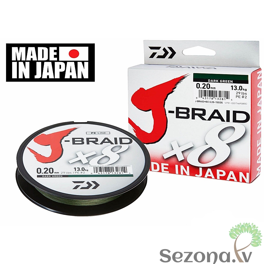 • DAIWA pītā aukla J-Braid X8 zaļa