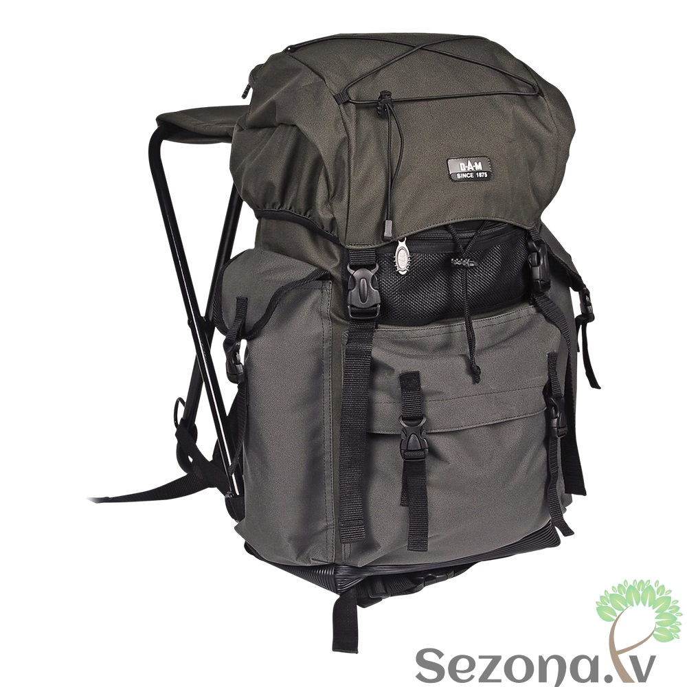 Šī ir ļoti ērta kombinācija- Makšķernieku mugursoma aprīkota ar saliekamu krēslu.