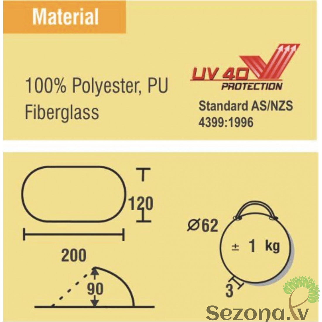* Arējā telts no 100% PU ar poliestera pārklājumu.