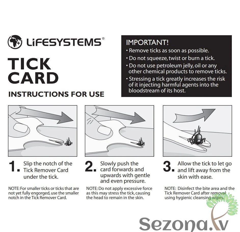 Ja piesūkusies ērce, tā jānoņem pēc iespējas ātrāk, turklāt tā, lai izņemtu visas tās ķermeņa daļas. Ar šo kredītkartes izmēra instrumentu ērci iespējams noņemt viegli un pareizi. Divi padziļinājumi dažāda lieluma ērču noņemšanai un integrēts palielināmais stikls ļauj ērces noņemt viegli un pareizi.