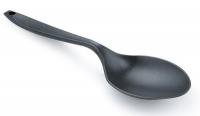 Viegla plastikāta pārgājienu karote. Roktura galā ir liels caurums, lai to būtu ērti sakabināt ar cietiem priekšmetiem.