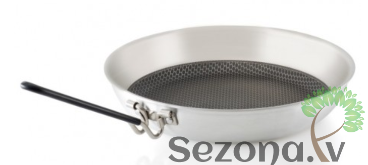 Pannā apvienotas divu metālu labākās īpašības- nerūsējošā tērauda spēja nerūsēt un mehāniskā izturība, kā arī alumīja serde ātrākai sasilšanai un siltuma vienmērīgai izdalei pa visu pannas virsmu. Nolokāmais rokturis ļaus somu ērtāk ievietot pārgājiena somā. Ar lāzeru apstrādāta cepamā daļa neļaus piedegt ēdienam, kā arī atvieglos mazgāšanu.