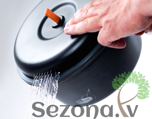 Izmantotie materiāli: Non-Stick Coated, Hard Anodized Aluminum, Clear Polypropylene, Nylon 6-6