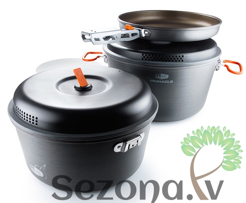 Pārdomāti un viegli lietojami katli ir nepieciešami jebkurā outdoor virtuvē. Šis katlu komplekts ir izgatavots no anodizēta alumīnija ar Teflon® Radiance pārklājumu, kas nodrošina lielu nodilumizturību un samazina degvielas patēriņu, jo uzsilst par 25% ātrāk nekā klasiskais Non-Stick pārklājums. Katlu vāki ir aprīkoti ar nokāšanas caurumiem. Ērtākai lietošanai un kompaktākai transportēšanai, šim katlu komplektam ir noņemams rokturītis, kuru var pielikt klāt arī komplektā esošai pannai. Katlu un pannas pamatne ir ar spirālveidīgām gropēm, kas nodrošinās stabilitāti uz degļa vai plītiņas. Arī nomazgāt šos traukus būs viegli un ērti pateicoties glabāšanas somiņai ar pārlīmētām šuvēm, kuru var izmantot kā mobilo izlietni. Pinnacle sērijas trauki ir ar Teflon® Radiance pārklājumu. Šī tehnoloģija ir īpaši izstrādāta kempingu un bāzes nometņu virtuvēm. Trīs slāņu pārklājums ir radīts, lai izturētu ilgu abrazīvu materiālu iedarbību. Trauki ar šo tehnoloģiju uzkarst par 25% ātrāk, kas nozīmē mazāku gāzes vai degvielas patēriņu.