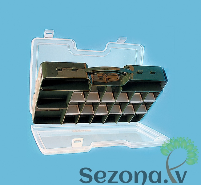 Liela divpusēja kastīte ar nodalījumiem makšķerēšanas sīkumu glabāšanai. Ir pārnēsāšanas rokturis.