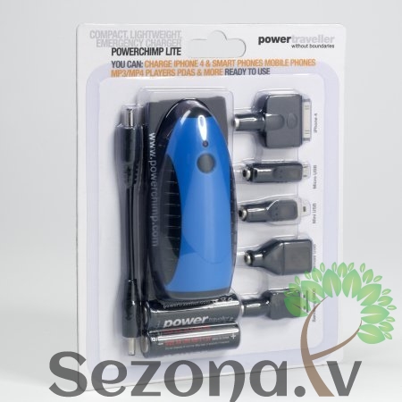Powerchimp Lite ierīce ir neatņemams aksesuārs ceļotājiem, kuriem bieži pietrūkst laika uzlādēt telefonu. Pateicoties Powerchimp Lite jūs varēsiet savu telefonu nodrošināt ar papildus 30% enerģijas. Viss, kas nepieciešams, ir divas pirkstiņu (AA tipa) baterijām. Turklāt Powerchimp Lite var izmantot arī kā lukturīti.