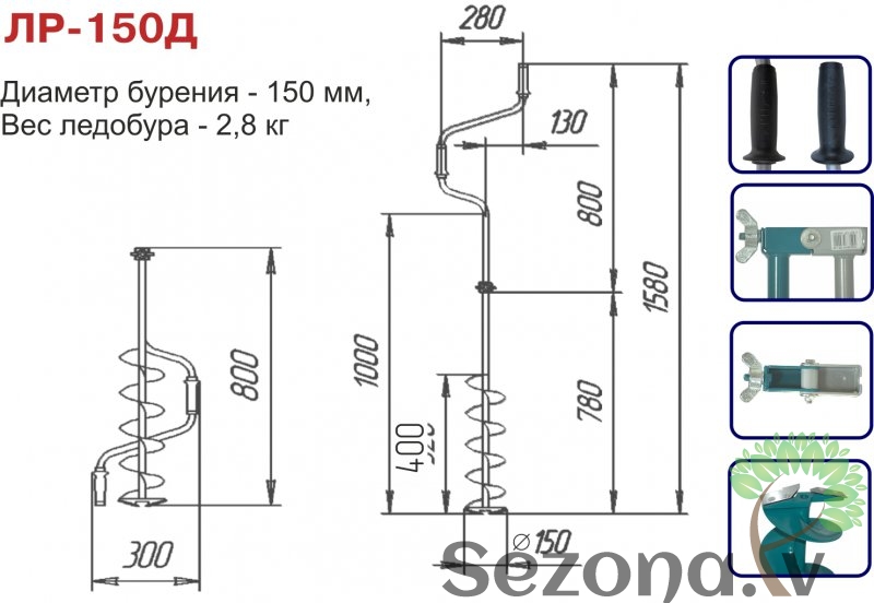 Klasisks ledusurbis LR-150D. Urbšanas diametrs 150mm, dziļums 1.0m. Lai palielinātu dziļumu, nepieciešams papildus iegādāties roktura pagarinātāju. Svars: 2,8 kg. Grieziena virziens kreisais ( pretēji pulksteņa rādītāju virzienam). Augšējais rokturis sakrīt ar ledusurbja asi. Saliktā veidā ledusurbis ērts transportēšanai. Klasiskais , universālais ledusurbis noderīgs jebkuros makšķerēšanas apstākļos. Liels urbšanas ātrums, pielietojot minimālas pūles , izturīgs un drošs.