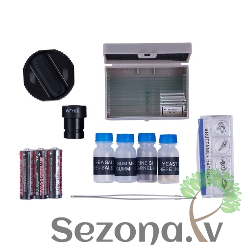 Mikroskopa palielināšanas jauda ir atkarīga no objektīva lēcu un okulāru jaudas. Okulārs ir mikroskopa tūbas augšdaļa, kur Jūs skatāties. Objektīvs ir novietots apakšdaļā un rada attēlu, ko Jūs redzat okulārā. Viens WF16x okulārs un trīs objektīvi (4x, 10x un 40x) ir iekļauti iepakojumā.