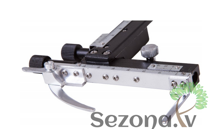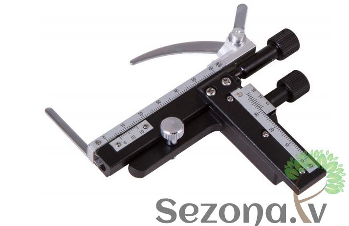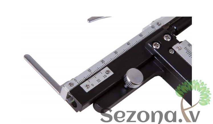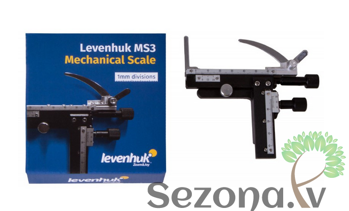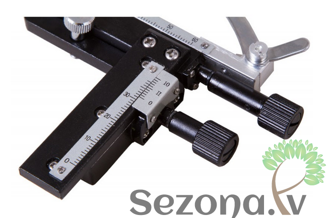 The Levenhuk MS3P Mechanical Scale is designed for convenient moving of microscope slides on the stage along X-axis (left-right) and Y-axis (forwards-backwards). It is also suitable for determining the coordinates of the specimen area you'd prefer to examine. Using the coordinates, you will be able to quickly return to the area selected earlier. The control knob allows for coaxial control of all movements. Each axis is accompanied by an auxiliary nonius scale that ensures high precision of measurements. The Levenhuk MS3P Mechanical Scale is a removable accessory that is installed in place of slide holders on the dowel pins in the stage sockets, and is fixed with a screw. Installation of the mechanical scale takes less than a minute. The scale is compatible with the following microscopes: