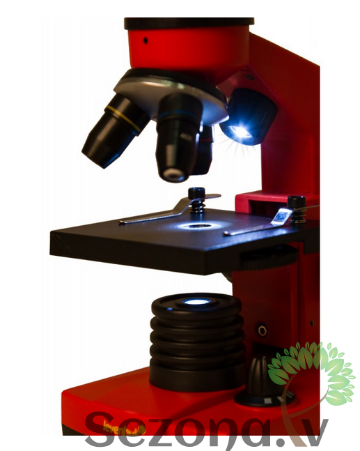 - Divi iebūvētie LED gaismas avoti sniedz iespēju vērot necaurspīdīgus objektus caurejošā vai atstarotā gaismā.