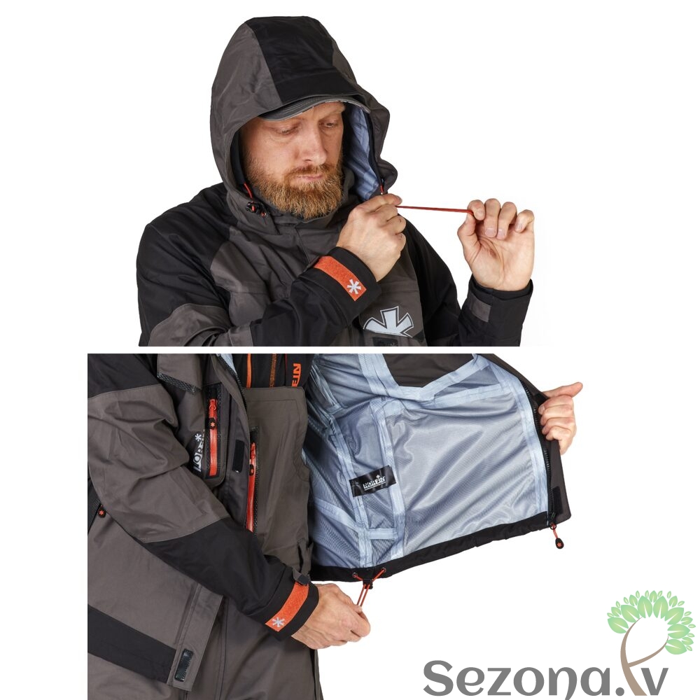 Kostīms īpaši izstrādāts makšķerniekiem, kas neatsakās no iemīļotās nodarbes pat stipra lietus laikā. Izturīgais triju slāņu membrānas materiāls lieliski pasargās no ilgstošiem nokrišņiem. Kostīms ir funkcionāls ar daudz dažādām kabatām un aksesuāriem.