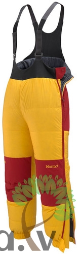 Marmot ir radījis izcilas zosu dūnu bikses speciāli Himalaju un Antarktikas apgabaliem. Divu slāņu Marmot MamBrain aizsardzība no vēja un mitruma un Cordura pastiprinājumi sēžamajā un ceļgalu daļās. Šīs bikses ir siltākais un tiap at laikā vieglākais siltumslānis pašos skarbākajos laikapstāķļos! Paredzētas augstkalnu alpīnismam un arktiskajām ekspedīcijām!