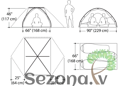Telts izmēri: 117 x 168 x 229cm