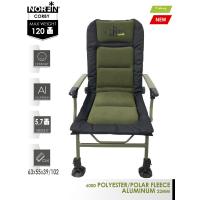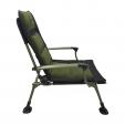 Uzticams, funkcionāls, saliekams krēsls. Vairāki atzveltnes regulēšanas līmeņi, kājas ar neatkarīgu augstuma regulēšanu un platiem uzgaļiem ļauj uzstādīt krēslu uz jebkuras nelīdzenas virsmas. Ērts polsterēts sēdeklis un flīsa galvas balsts nodrošina maksimālu komfortu. Viegls un īpaši izturīgs alumīnija rāmis. Krēsls ir viegli salokāms un pārnēsājams. Ideāla izvēle makšķerniekiem.