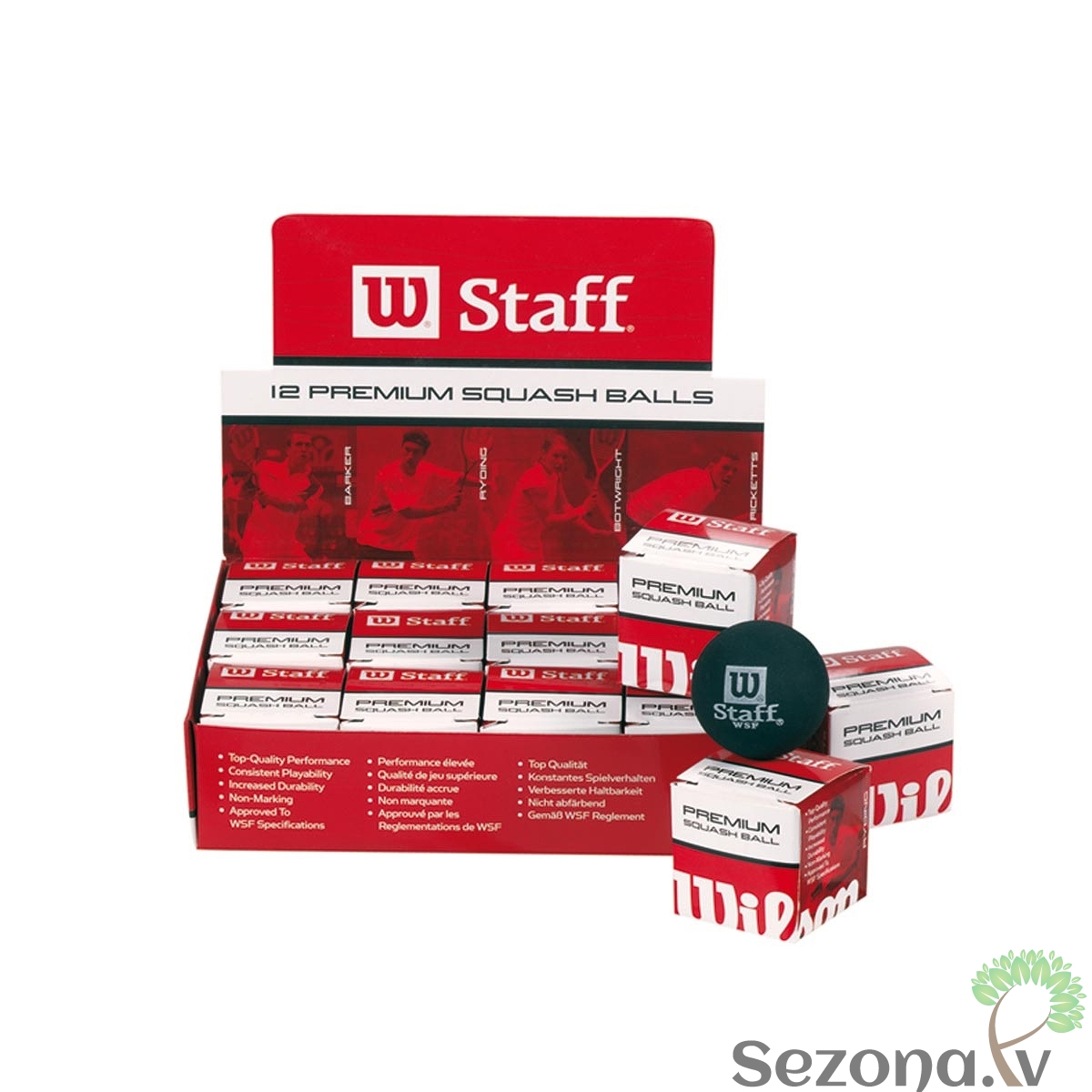 Nodrošina labas spēles kvalitāti. Apstiprinātas Pasaules Skvoša Federācijai. Ir pieejami dažādi ātrumi (fast, medium, slow, extra slow) Iepakojumā 1 gb.