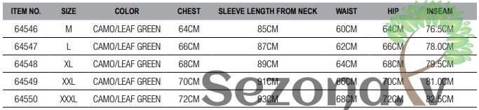 - Poliestera Taslon audums ar RealTree kamuflāžas apdruku, laminēts ar TPU membrānu, 8000 mm.