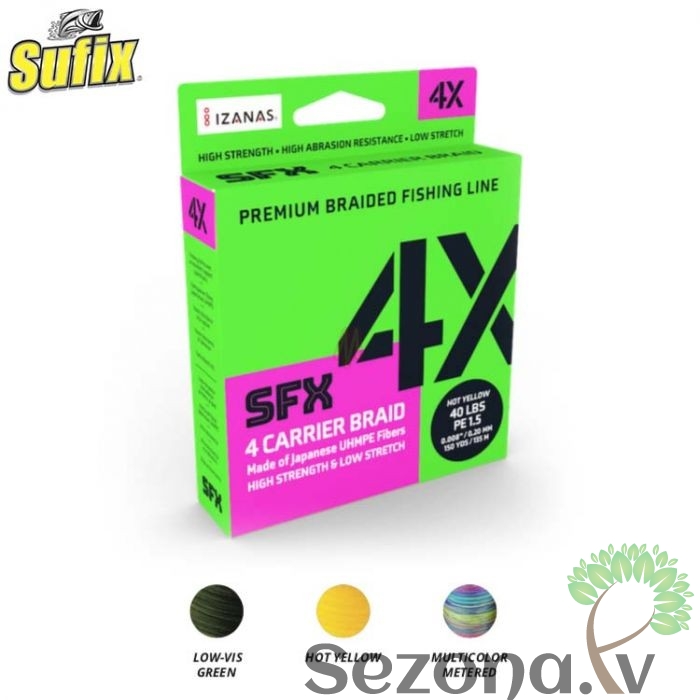 Jaunā 4 dzīlu Sufix SFX 4X pītā aukla ir izgatavota no 100% Japānas UHMPE šķiedras, ar augstu pārrāvuma izturību un izcilu nodilumizturību. Ideāli piemērota zvejai sarežģītos apstākļos un ar lieliem mānekļiem.