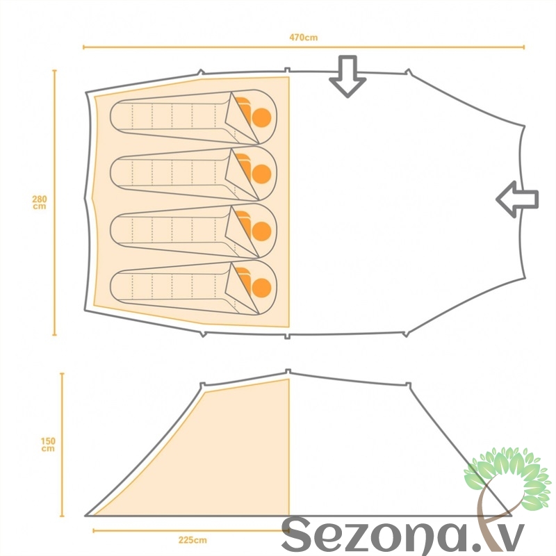 - Paplašināma uzglabāšanas soma ļauj telti viegli iepakot un izpakot.