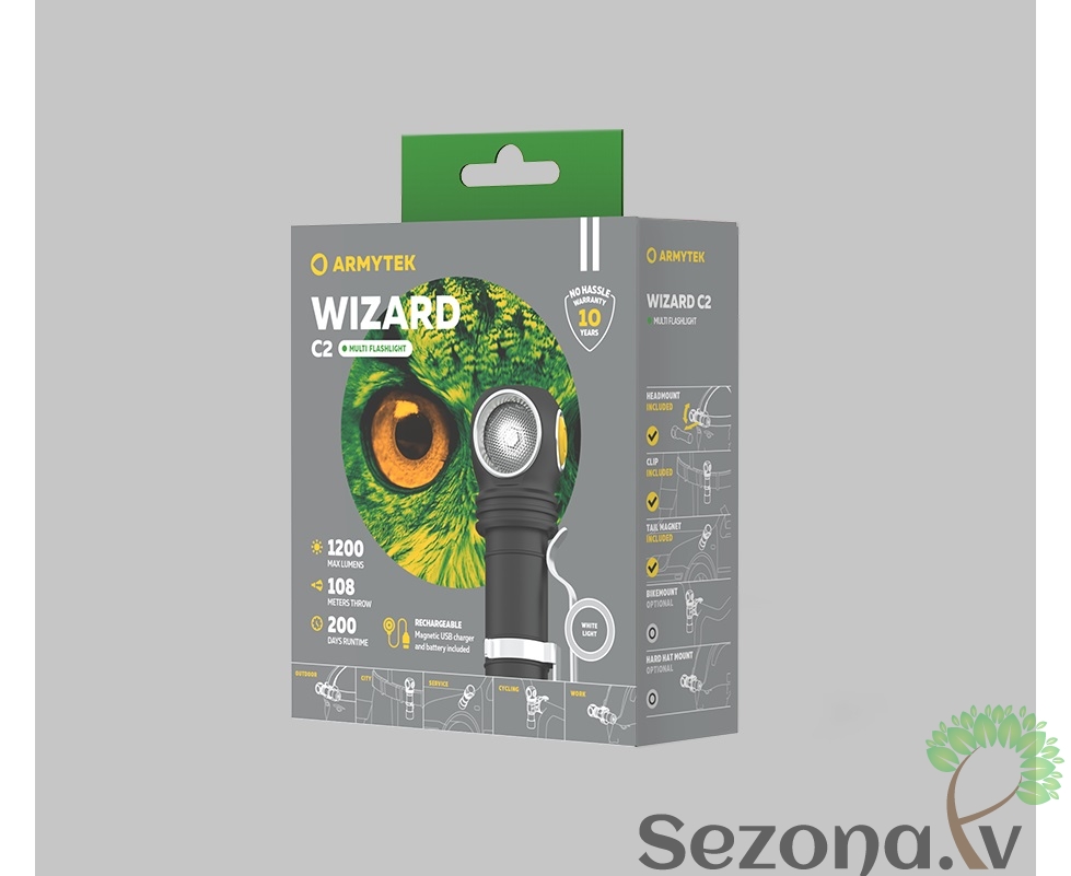 ARMYTEK WIZARD C2 Magnet USB (WHITE LIGHT) pieres lukturis.