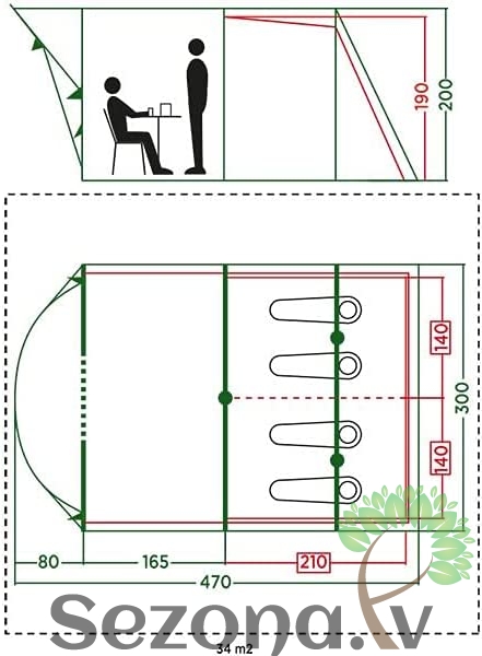 • Flysheet materiāls: poliesters ar PU pārklājumu