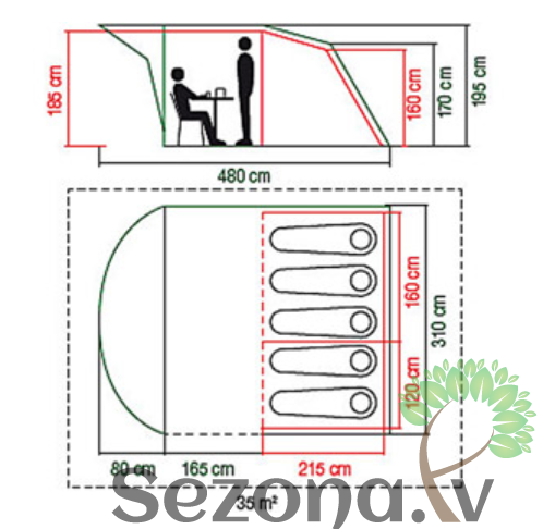 Telts izmēri:480×310×195