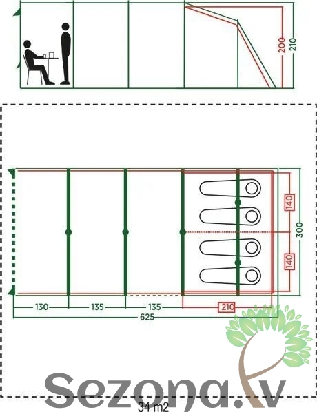 Ieliekamais durvju slieksnis atvieglo iekāpšanu teltī un izkāpšanu no tās. Divas paplašinātās XXL guļamistabas ir lieliski piemērotas ērtai gulēšanai un lielākam komfortam. Pagarinātais priekšējais jumtiņš pasargā no saules un lietus.