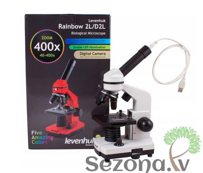 • Levenhuk Rainbow D2L PLUS Mikroskops ar digitālo kameru Baltā Krāsā