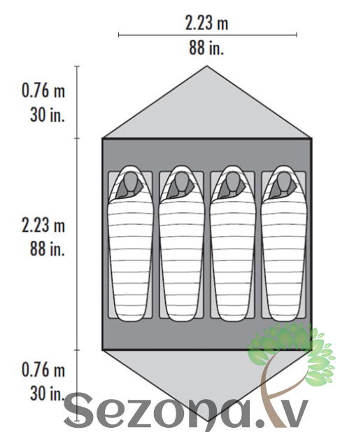 | Telts tilpums | 116 cu. ft / 3285 liters |