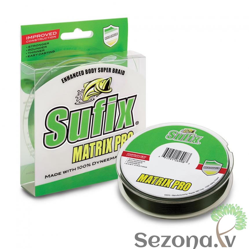 SUFIX MATRIX PRO ir unikāla, augstas kvalitātes pītā aukla ar visām īpašībām, kas makšķerniekam nepieciešamas: augstas pakāpes izturība, ērti vadāma, gandrīz nestaipās un viegli iemetama. Mūsu īpašais pīšanas process rada apaļāku auklu, kas darbojas daudz labāk nekā tradicionālās plakanās pītās auklas. Apaļāka aukla nodrošina laidenāku metienu tādejādi uzlabojot tā precizitāti un attālumu. Izmantojot 100% Dyneema šķiedru tiek nodrošināta visaugstākā izturība attiecībā pret diametru, vienlaicīgi saglabājot maksimālu jūtību un zibenīgu pieciršanu. Matrix Pro raksturo arī neticama izturība un nodiluma pretestība.