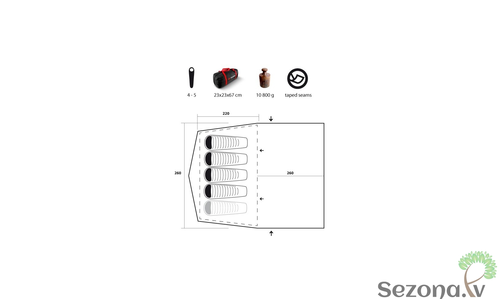 Šī ir liela telts, kas piemērota četrām līdz piecām personām. Komfortablajā Arizona teltī ģimene jutīsies ērti arī ilgstoša ceļojuma laikā. Plašā priekštelpa ir ideāla gan ēdiena gatavošanai, gan maltīšu ieturēšanai, gan arī papildu personas pārnakšņošanai.