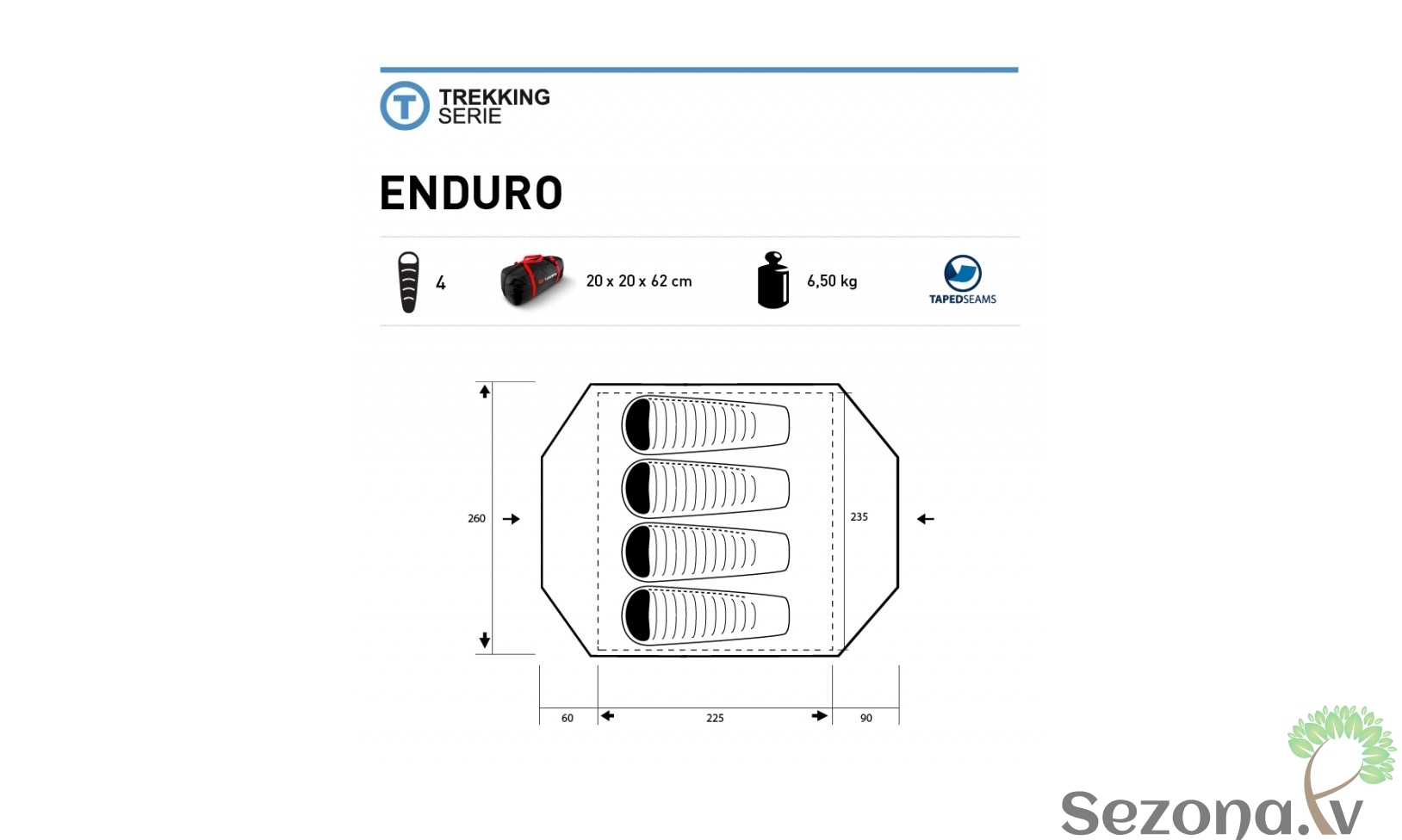 • Iekšējās telts materiāls: permeable WR 100 % PES