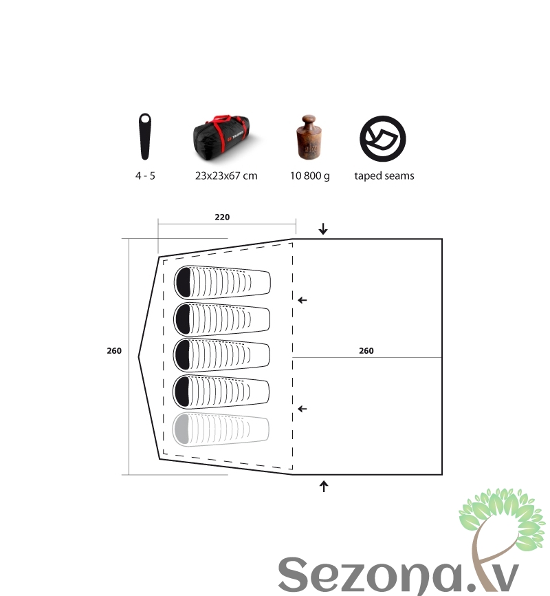 • Virspuses telts materiāls: 100 % poliesters, 3000 mm H2O
