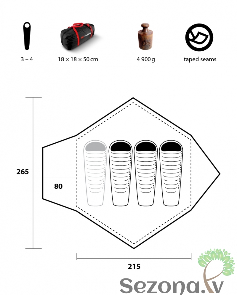 • Iekšējās telts materiāls: permeable WR 100 % PES